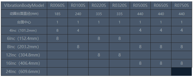 圓形擴展臺具有良好的頻響特性,其臺面螺釘分布符合上表標注尺寸