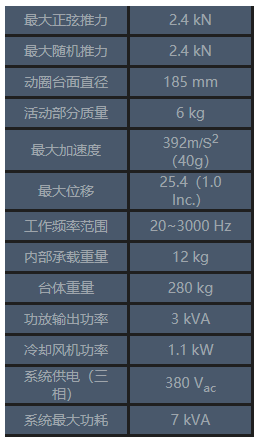 適合重量在5kg以下的機(jī)電產(chǎn)品試件,正弦定頻振動(dòng)試驗(yàn)、正弦掃頻振動(dòng)試驗(yàn)、寬帶隨機(jī)振動(dòng)試驗(yàn)。主要技術(shù)參數(shù)