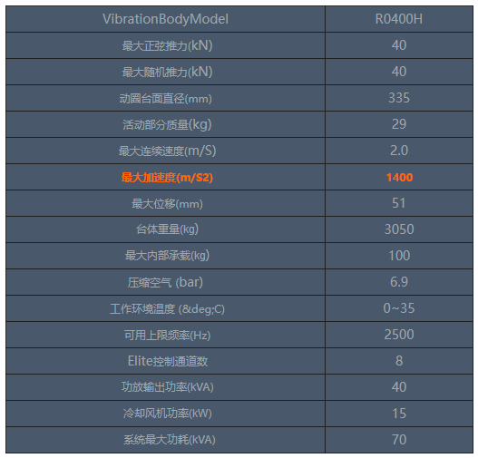 140g,40kN推力高加速度振動(dòng)臺(tái)采用輕質(zhì)高強(qiáng)度動(dòng)圈,空載加速度比標(biāo)準(zhǔn)設(shè)備提高了40%。